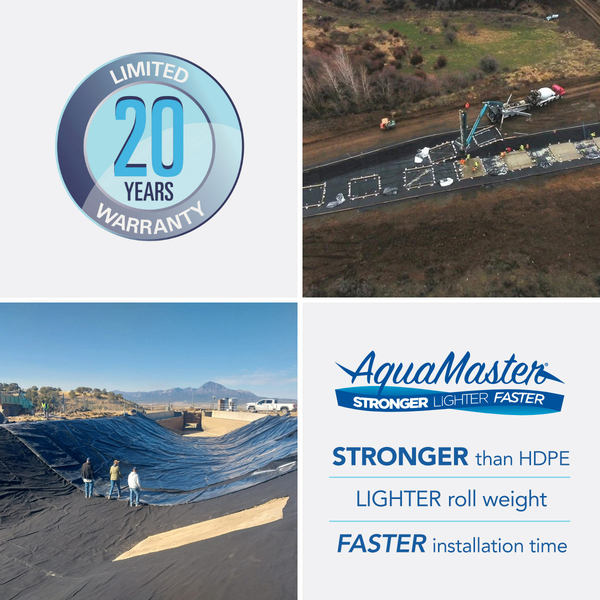 Our geomembrane liners are made with exclusive polyolefin coatings for maximum toughness and abrasion resistance. With enhanced hydrostatic resistance and our high tear strength scrim technology, our AquaMaster® lining is guaranteed to meet your water containment needs.